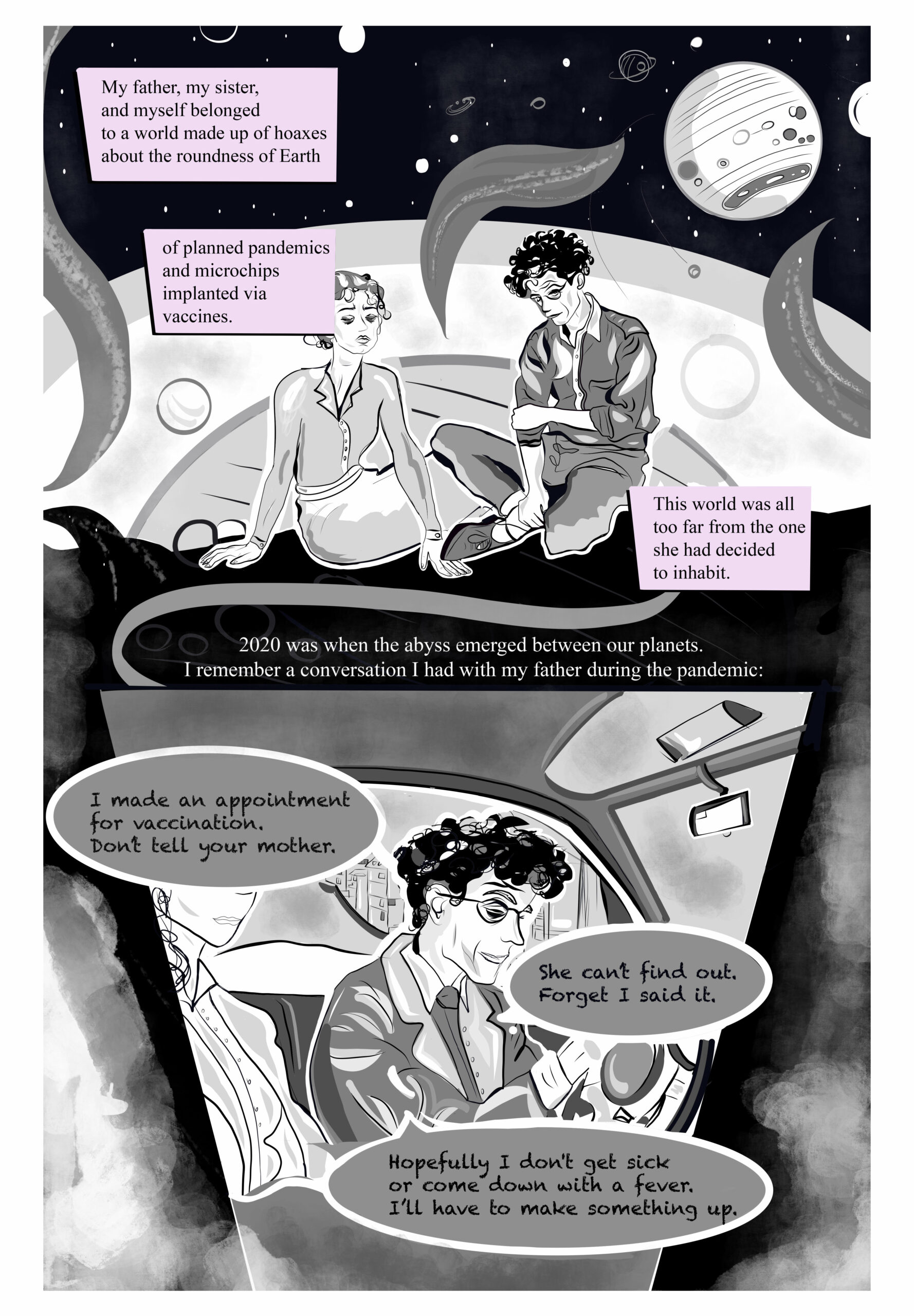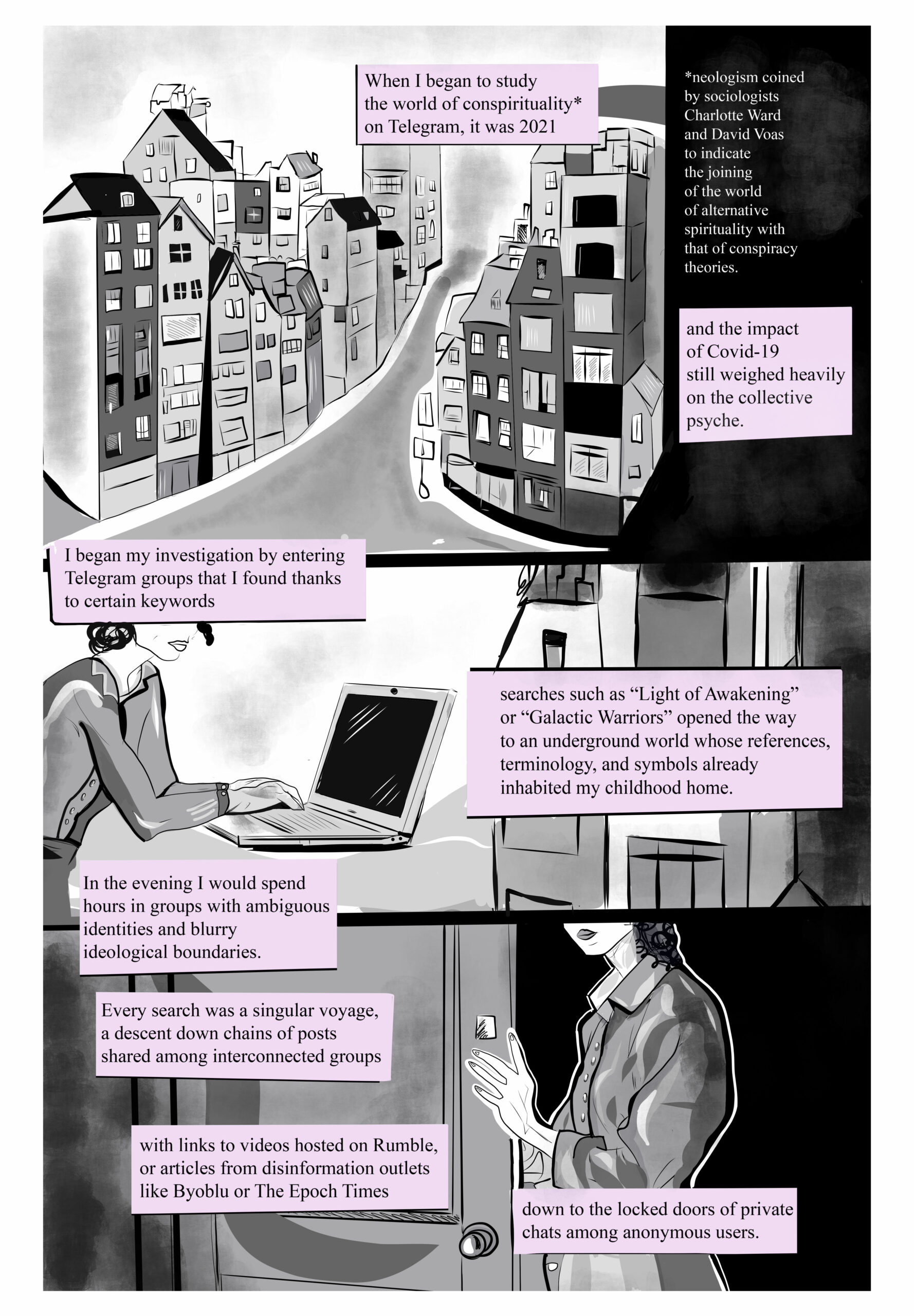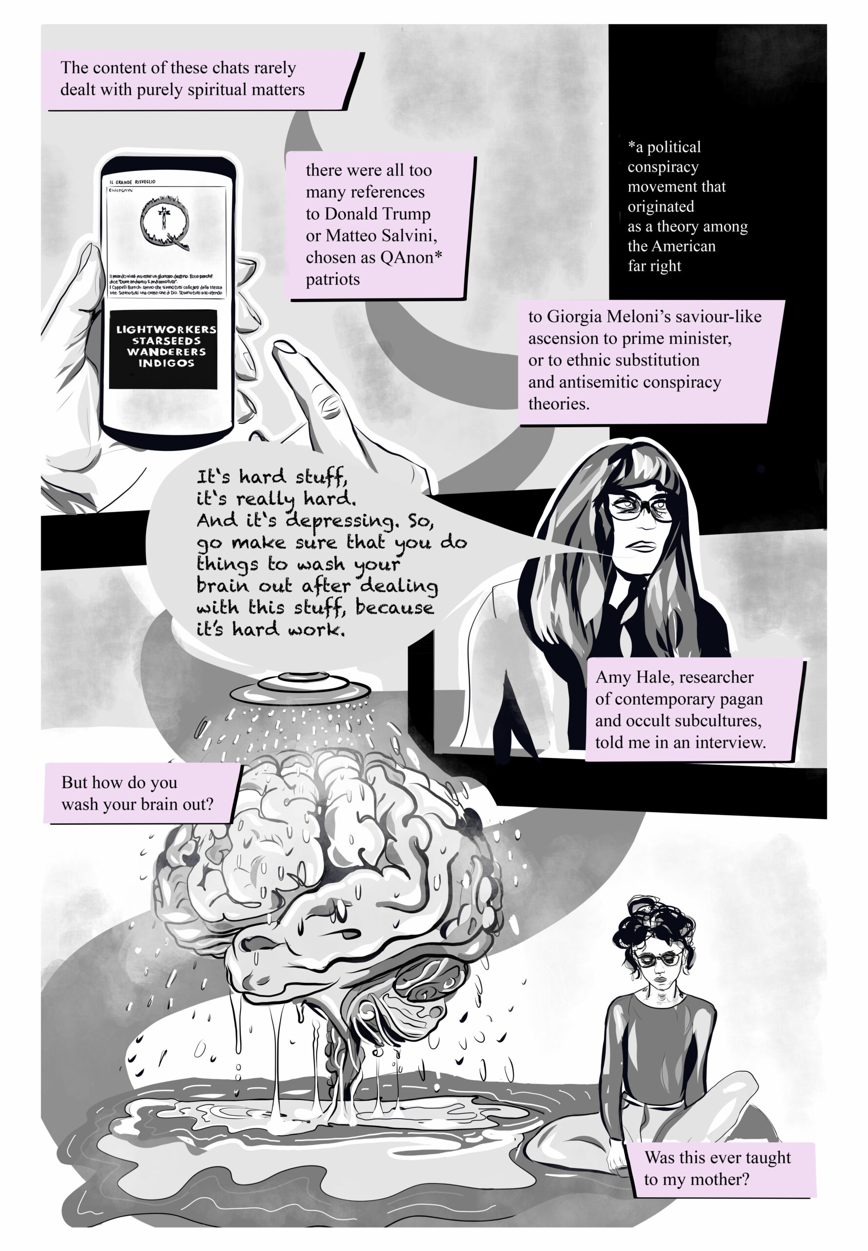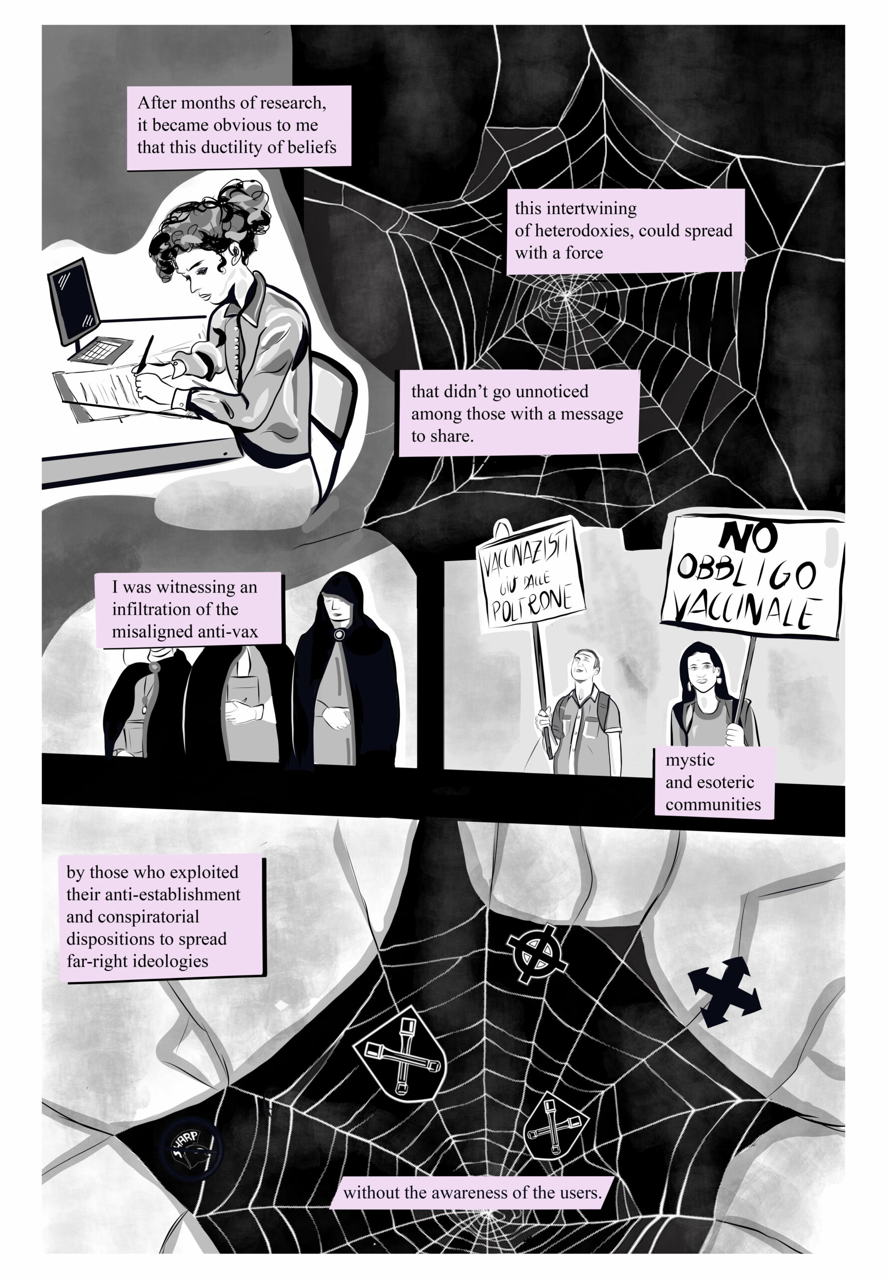 There are no fixed coordinates in the underworld of conspiracies. A graphic story by Sofia Cherici and Eleonora Pepe.