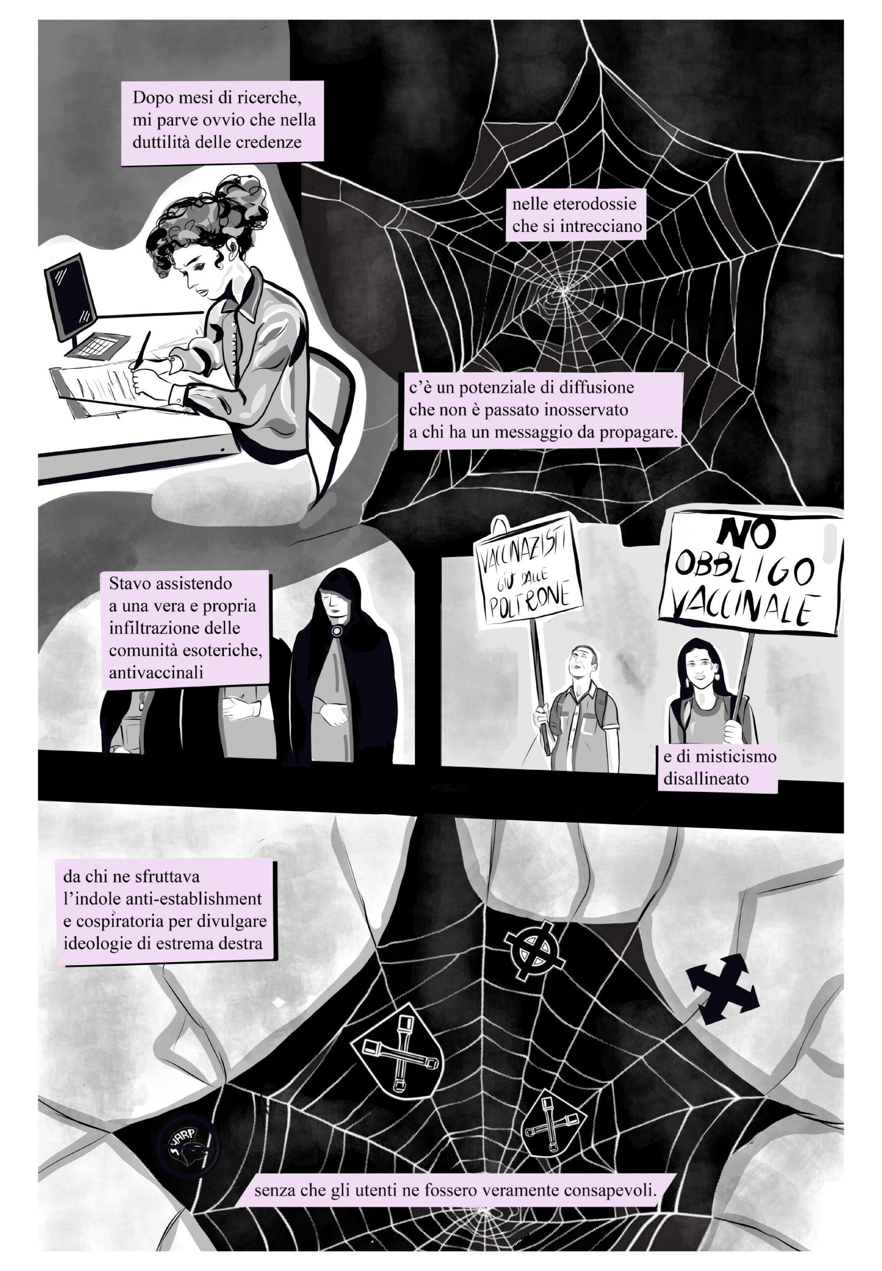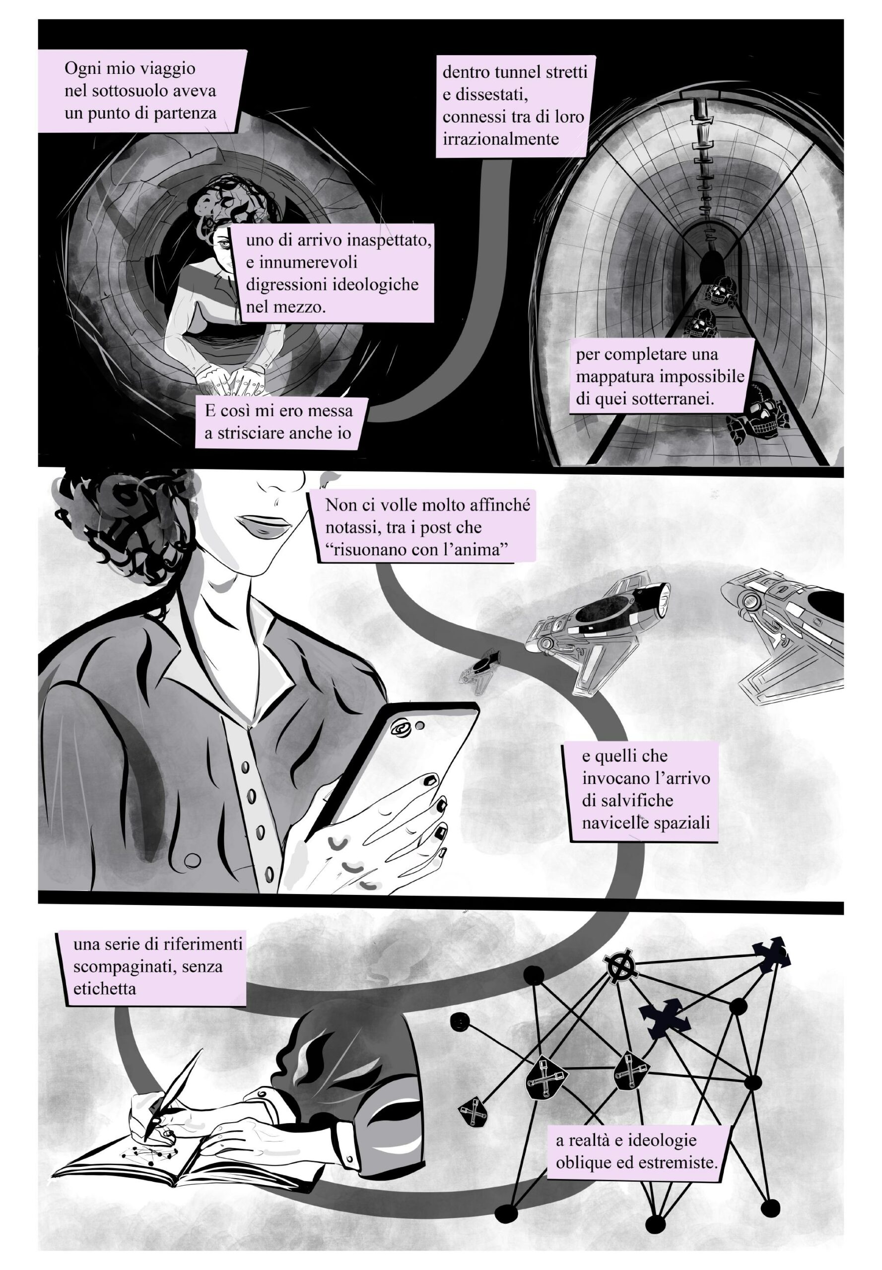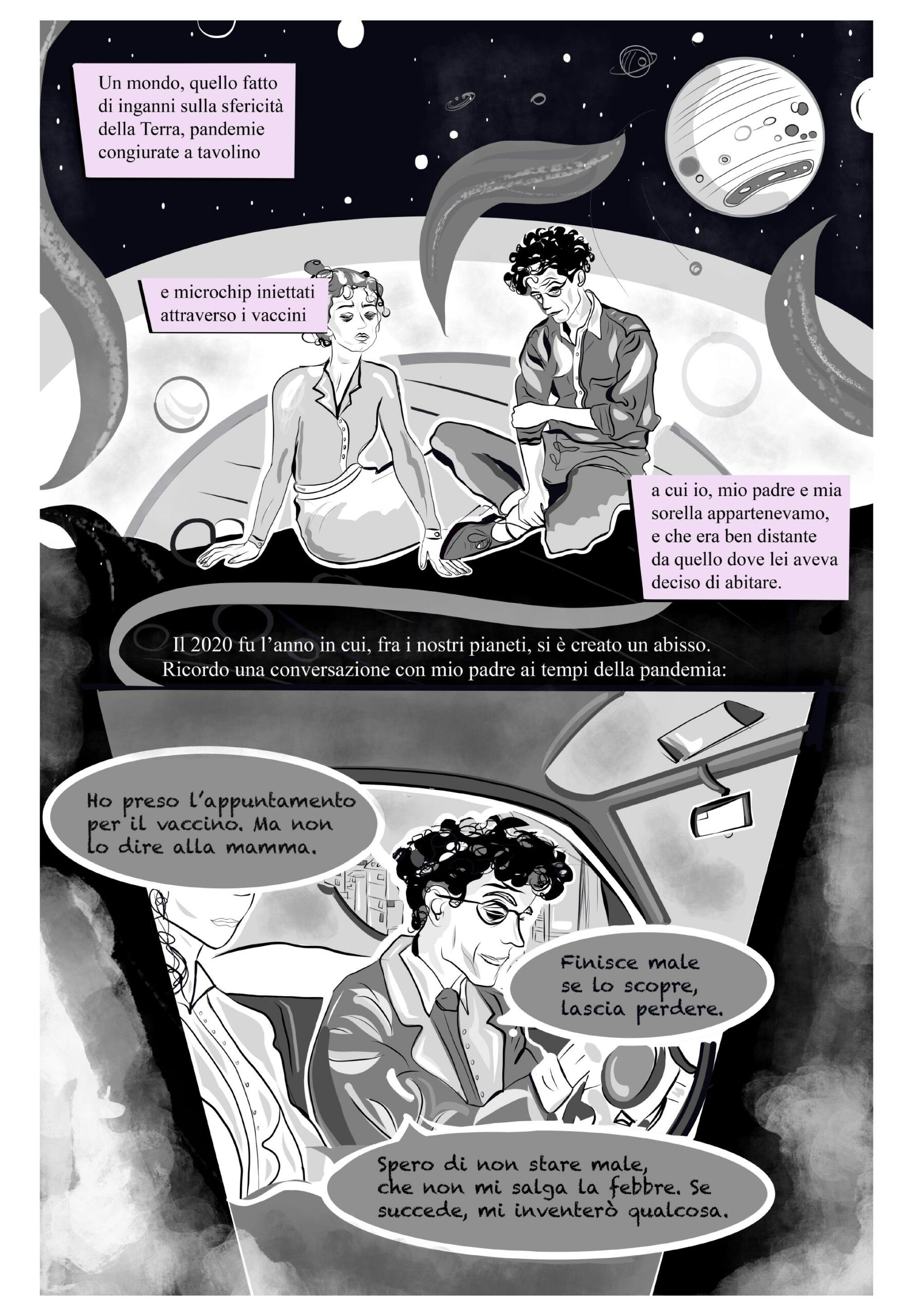 Non ci sono coordinate fisse nell’universo cospirazionista. Un fumetto di Sofia Cherici ed Eleonora Pepe.